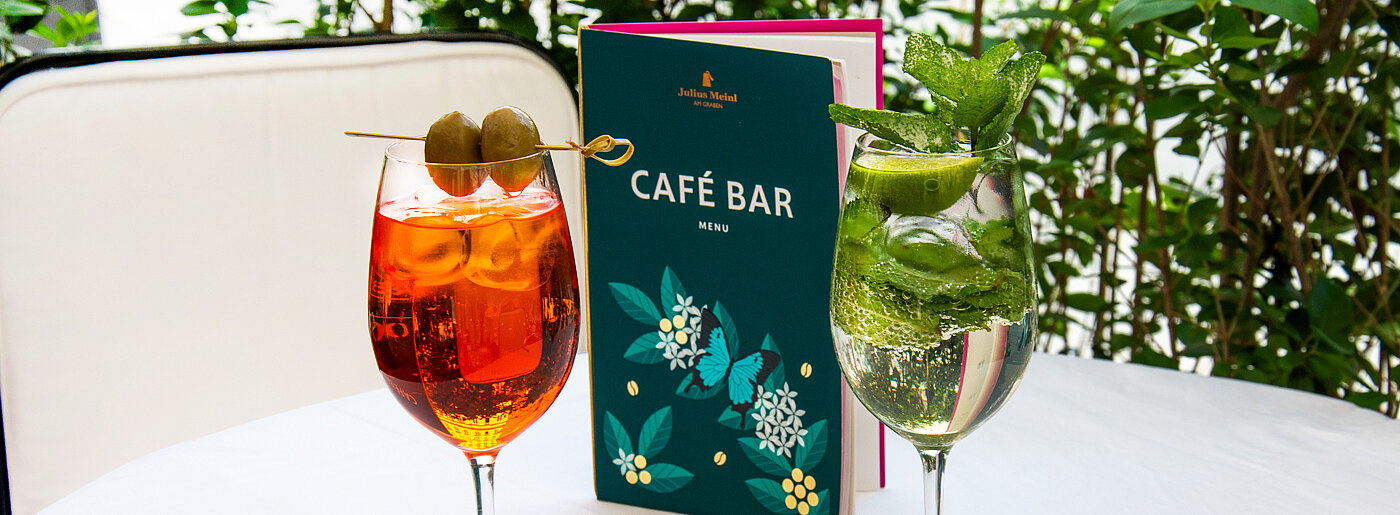 Um diese Kaffeehauskultur entsprechend zu würdigen, empfangen wir unsere KundInnen bereits im Eingangsbereich in MEINLS CAFÉ BAR im Herzen von Wien. In unserem beliebten Innenstadttreff mit dem einladenden Gastgarten hat mehr als 30 Kaffeerezepturen zu bieten: von der klassischen Melange über Kapuziner, Einspänner und Kaffee verkehrt bis hin zu modernen Kreationen. Dazu können süße Versuchungen aus der hauseigenen Patisserie genossen werden. Kleine Snacks, Erfrischungen und edle Tropfen zum Anstoßen werden in Meinls Café Bar ebenso gereicht. Kommen Sie einfach in Meinls Café Bar vorbei und lassen Sie sich in dieser klassisch-stilvollen Atmosphäre nach Strich und Faden verwöhnen!