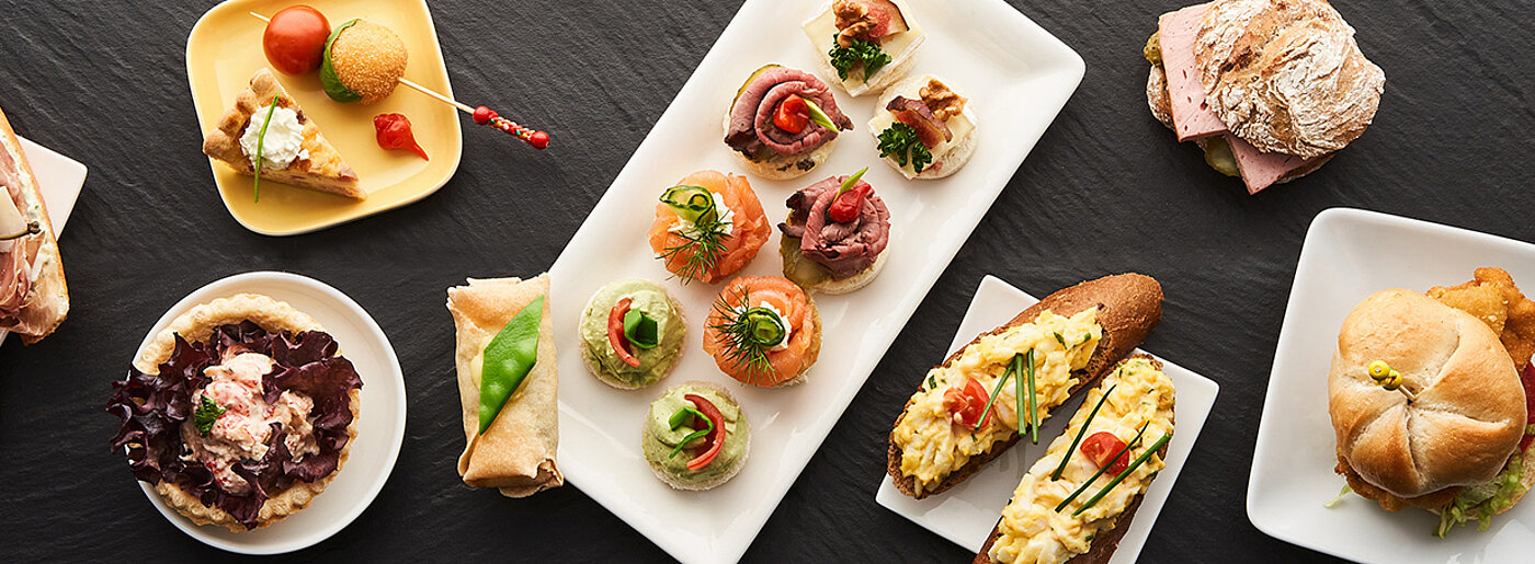 Whether on site, to take away or for your personal event. There are many ways to take advantage of our culinary offerings. Enjoy your favourite coffee, snacks and homemade pastries from Meinl's patisserie in our cosy coffee bar. Or treat yourself to meals during your lunch break - freshly prepared every day, of course - at Meinl to go. And don't forget our popular catering with a wide selection of canapés, finger food and desserts for your party, business event or meeting.