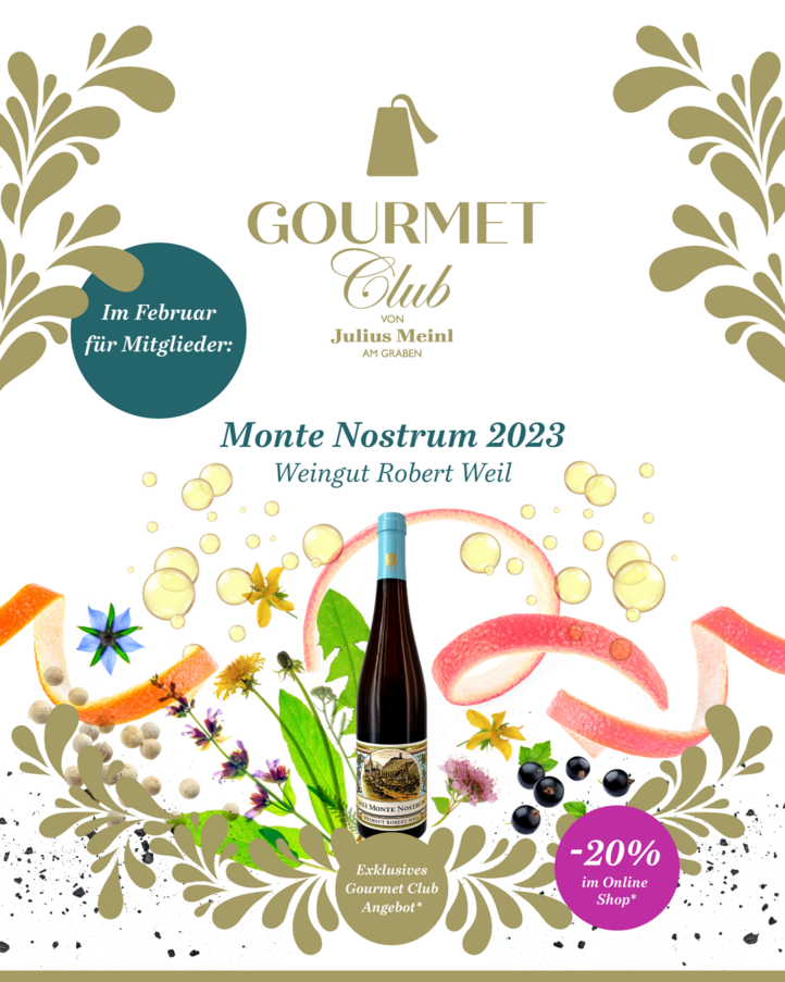 Im Februar erhalten Sie -20 % Rabatt auf den Riesling Monte Nostrum 2023 von Weingut Robert Weil – exklusiv für Gourmet Club Mitglieder.