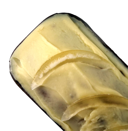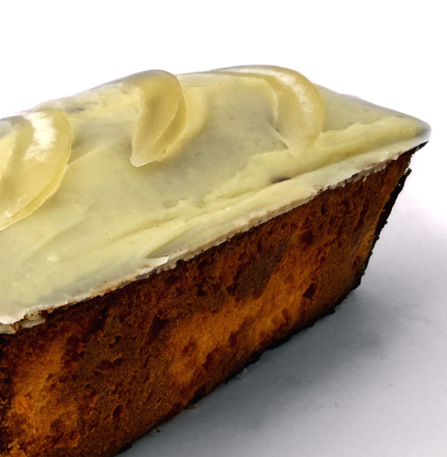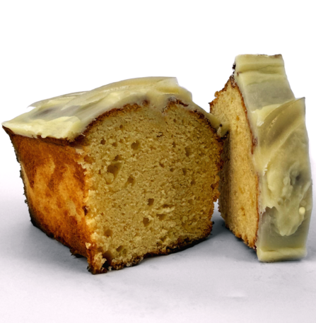 Ein wundervoller Klassiker. Luftige Konsistenz, zitroniger Kuchenteig, überzogen mit feiner Cremeglasur und mit kandierten Zitronenschalen bestückt.